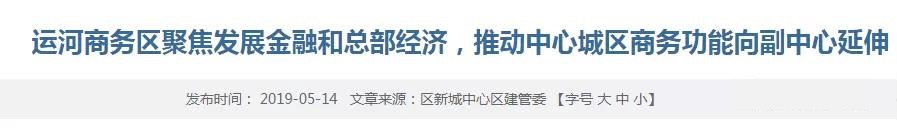 未来中心城区金融机构总部将迁至运河商务区